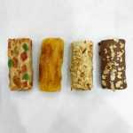 Barrita de mazapán de frutas escarchadas, chocolate y almendra, yema o almendra
