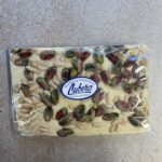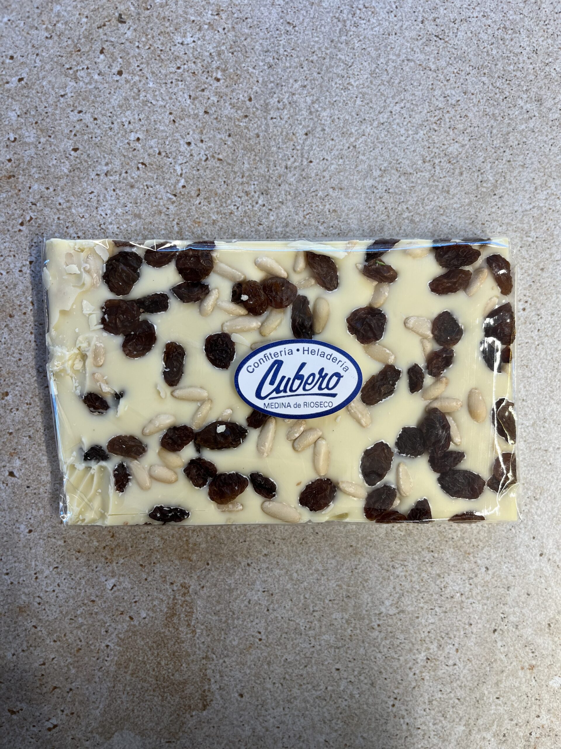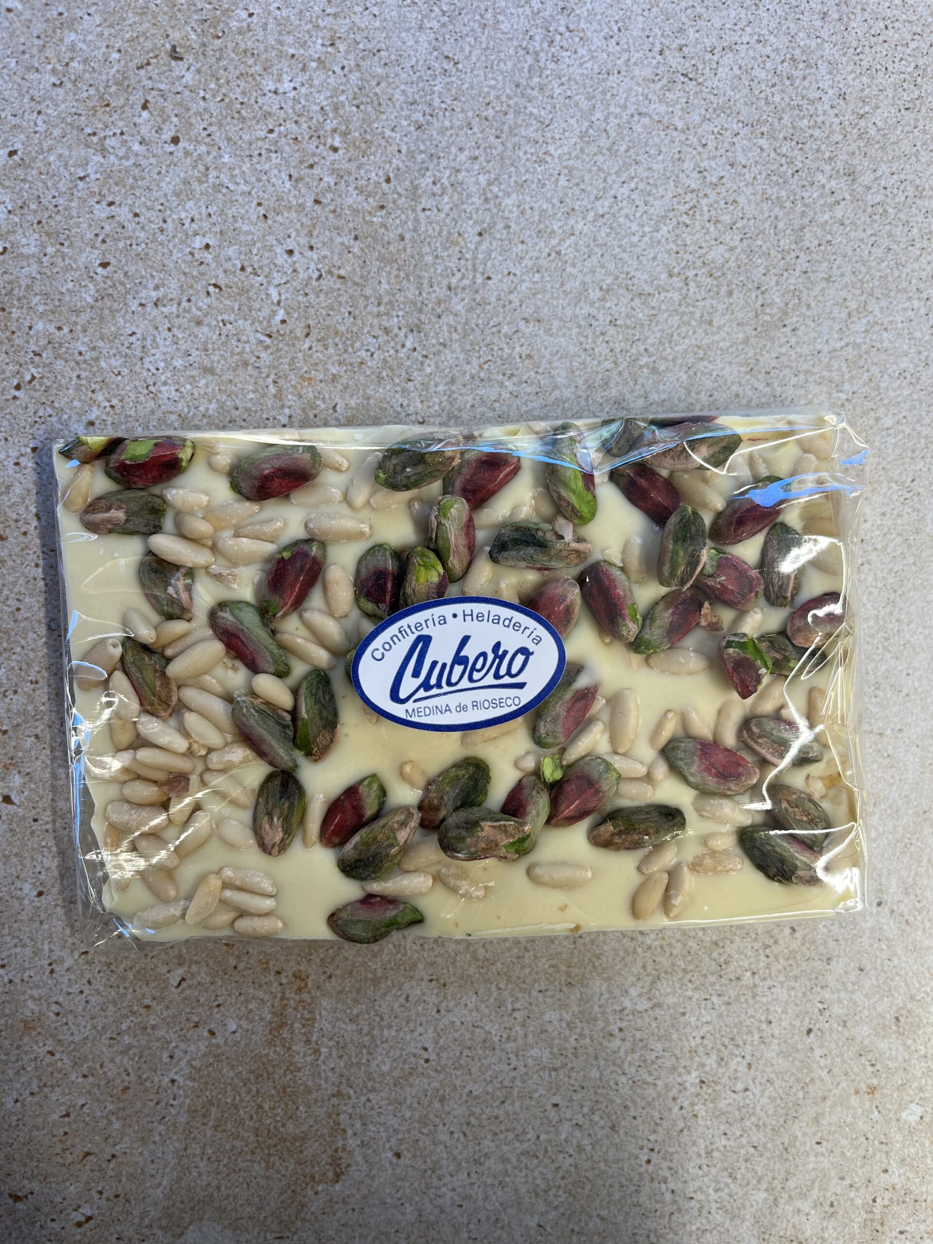 Tableta de chocolate blanco decorado con piñones y pistachos